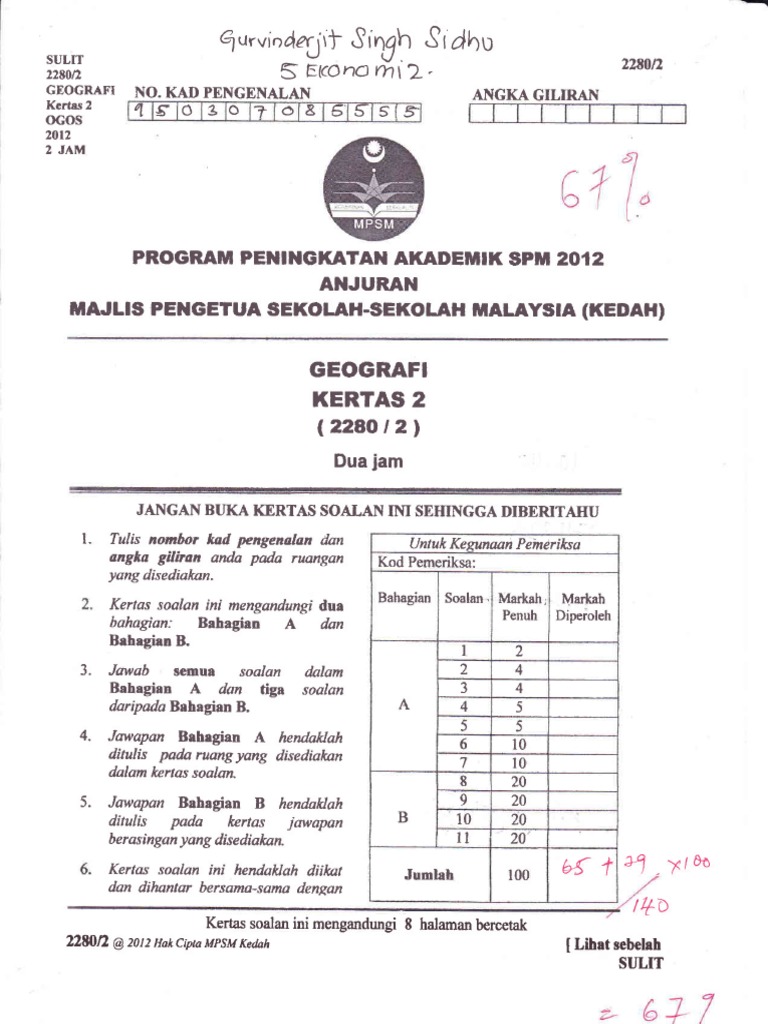 Geografi kertas 2 spm. Contoh Soalan Linus Kemasukan Tahun 1. Calon yang tidak dapat menduduki mana-mana kertas peperiksaan bertulis atau melaksanakan ujian lisan khusus calon persendirian akan dianggap TIDAK HADIR bagi mata pelajaran berkenaan. Contoh Soalan Objektif Perlembagaan Malaysia.